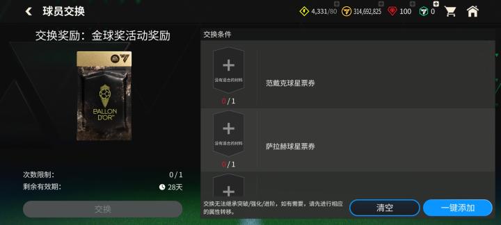 收集完成后,点击对应的交换选项,使用符合要求的球星票券即可兑换奖励。