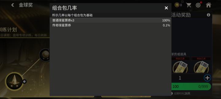 玩家参与实时对战,可以获得一定数量的金球奖活动代币,每日参与训练计划也可以获得一定数量的金球奖活动代币。