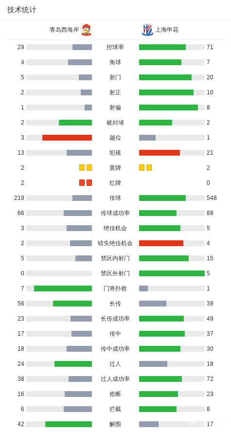 北京时间10月17日,中超联赛第27轮展开角逐,青岛西海岸坐镇主场迎战上海申花。上半场,马特乌斯头球破门先拔头筹,吴曦点射扳平比分。孙捷对于汉超犯规吃到红牌,张呈栋不满判罚也吃到红牌;下半场,于汉超头球破门反超比分,李昊连续扑救力保城池。最终,上海申花客场2-1逆转9人作战的青岛西海岸。
