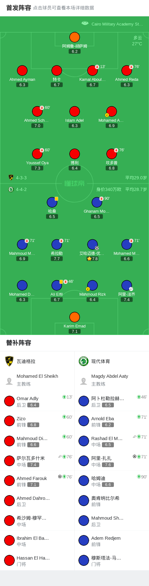 第72分钟,现代体育球员Rashad El Metwaly助攻阿里-扎扎打入一球。