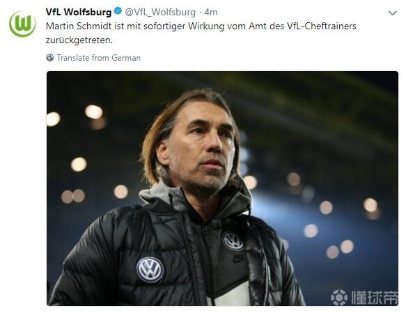 北京时间今日凌晨,德国体育媒体《踢球者》记者托马斯-希特(Thomas Hiete)率先通过推特透露,沃尔夫斯堡主教练马丁-施密特已经提出辞职。