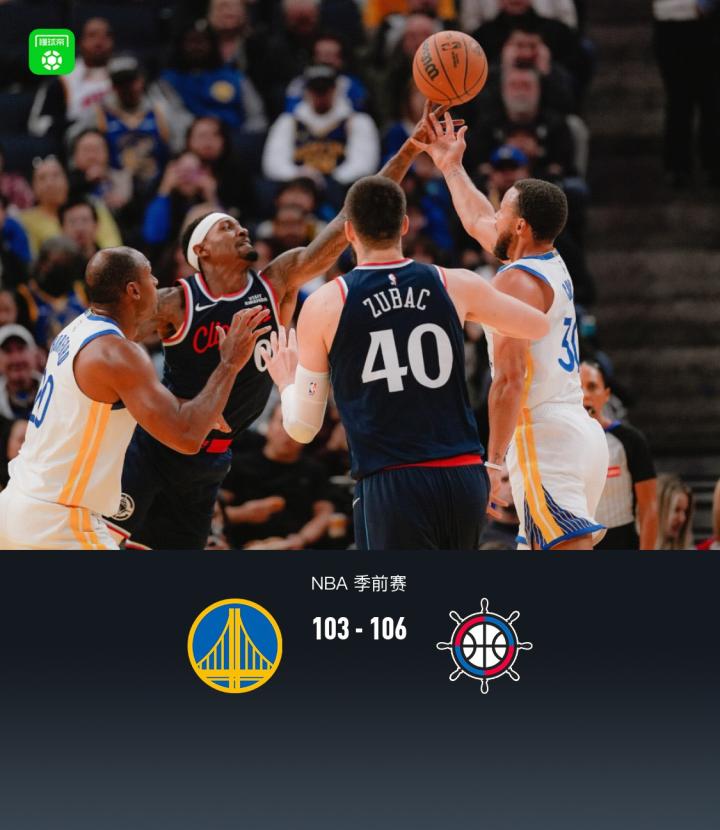 北京时间10月18日NBA 季前赛,金州勇士对阵洛杉矶快船。半场勇士43-47快船,最终勇士103-106快船。