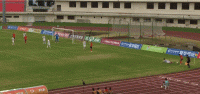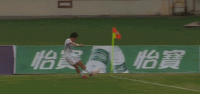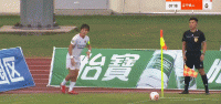 第42分钟,因角旗杆断了导致比赛暂停,工作人员重新安装