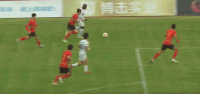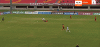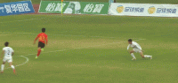 第20分钟,吴雷别扭停球后脚下一滑,随后身体不适倒地