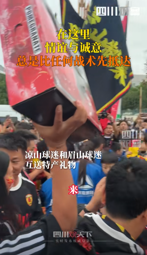 看台上飘着“敢打敢拼川汉子”的红横幅,场边小贩的冰粉摊被球迷围得里三层外三层。连客场球迷刚出高铁站,就有攥着油果子的本地大叔凑上来:“看球哇?跟到我走,顺路带你吃最巴适的羊肉格格!”