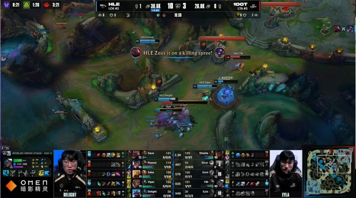 Zeus超神赛恩全场游龙,HLE轻取100T挺进瑞士轮2-1组