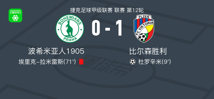 北京时间10月18日,捷克足球甲级联赛第12轮展开争夺,波希米亚人1905坐镇主场迎战比尔森胜利。比赛中,梅米奇送出精准助攻,杜罗辛米冷静破门,为比尔森胜利取得领先。下半场,波希米亚人1905球员埃里克-拉米雷斯因严重犯规被裁判直接出示红牌罚下,球队被迫以少打多。此后双方均未能改写比分,最终比尔森胜利客场1比0战胜波希米亚人1905,全取三分。
