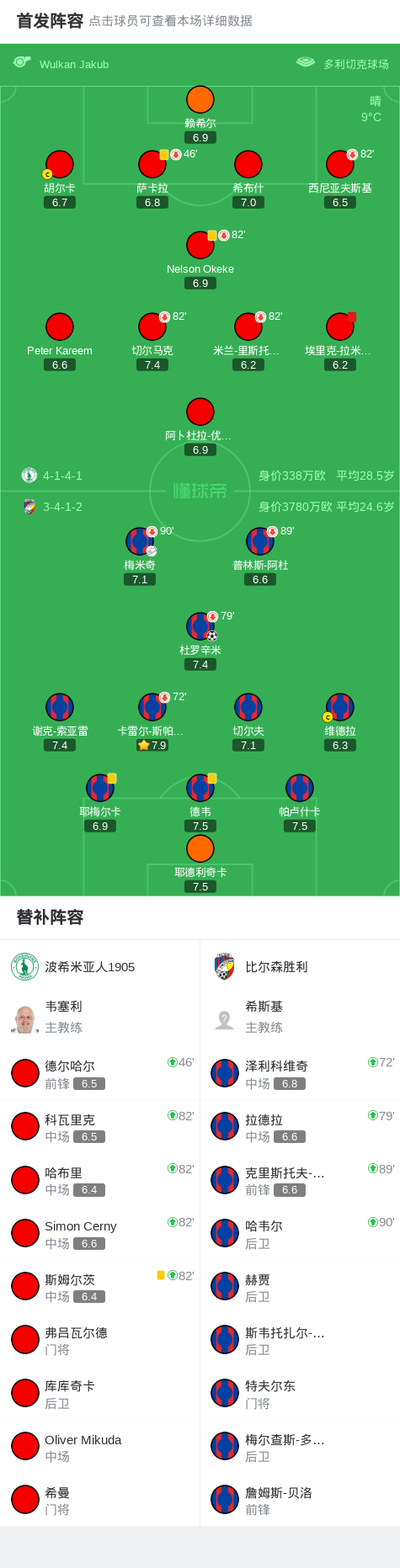 第9分钟,比尔森胜利球员梅米奇助攻杜罗辛米打入一球。