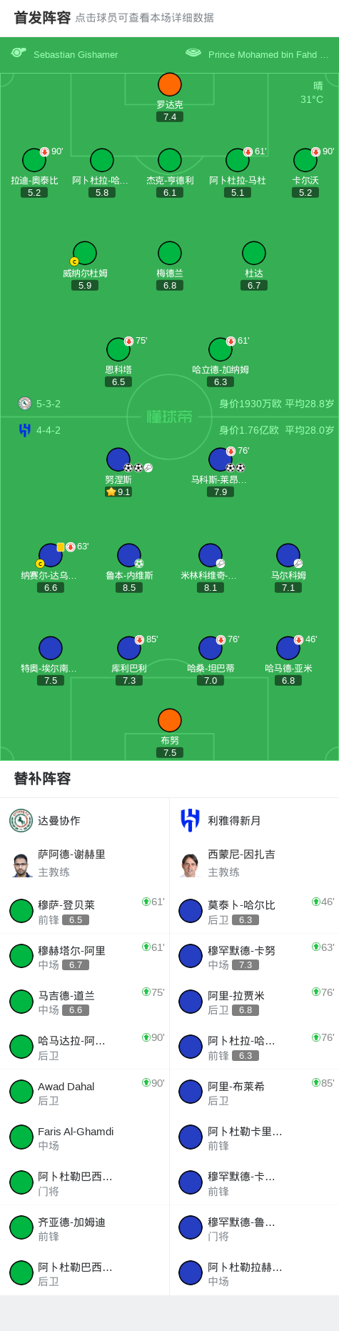 利雅得新月5-0血洗达曼协作,马科斯-莱昂纳多双响,努涅斯双响