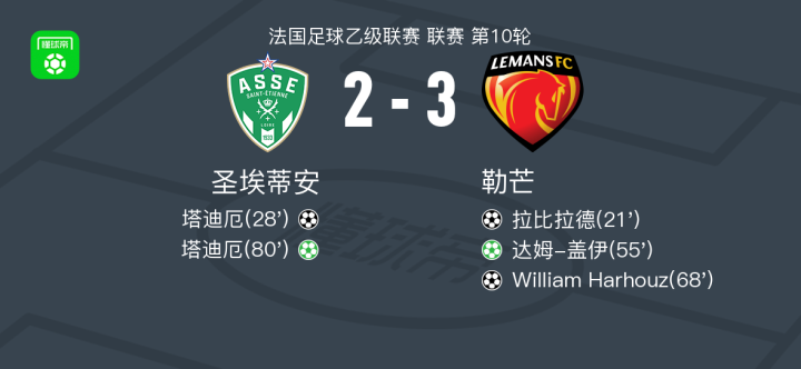 勒芒3-2圣埃蒂安,达姆-盖伊1射1传,William Harhouz破门