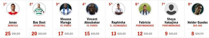 在对阵费拉人的比赛中,日本球员中岛翔哉打进1球,并跃升至射手榜的第7位。若纳斯、多斯特、马雷加、阿布巴卡尔和拉菲尼亚,分列第1到第5位。