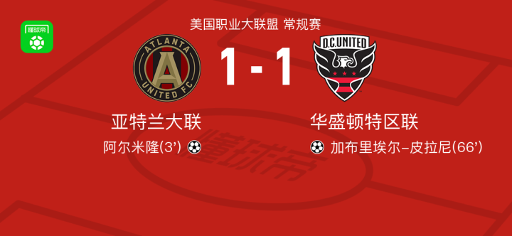 亚特兰大联1-1华盛顿特区联,阿尔米隆首开记录,加布里埃尔-皮拉尼扳平