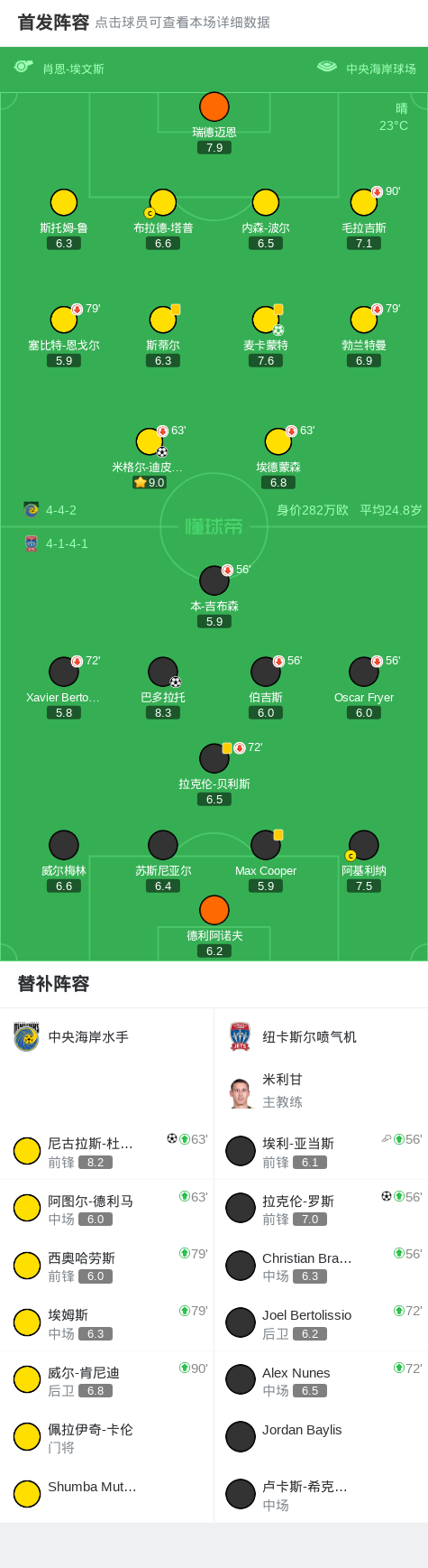 下半场补时第8分钟,中央海岸水手球员尼古拉斯-杜瓦蒂打入一球。