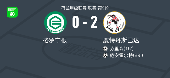 鹿特丹斯巴达2-0格罗宁根,劳里森建功,范安霍尔特锦上添花战报bot2025-10-19 22:27北京时间10月19日,荷兰甲级联赛第9轮,格罗宁根主场迎战鹿特丹斯巴达。比赛中,阿尤布-乌弗基尔送出助攻,劳里森接球后完成破门,为鹿特丹斯巴达取得领先。临近比赛结束,范安霍尔特再下一城,帮助球队扩大比分优势。最终,格罗宁根0-2不敌鹿特丹斯巴达。点击查看本场比赛详细数据>>点击查看荷甲完整积分榜>>精彩瞬间第15分钟,鹿特丹斯巴达球员阿尤布-乌弗基尔助攻劳里森打入一球。第89分钟,鹿特丹斯巴达球员范安霍尔特打入一球。 球队阵容 技术统计 展开更多