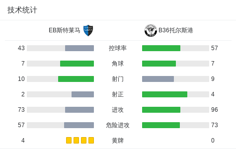 第63分钟,EB斯特莱马球员M-莫滕森助攻Ábraham Joensen打入一球。