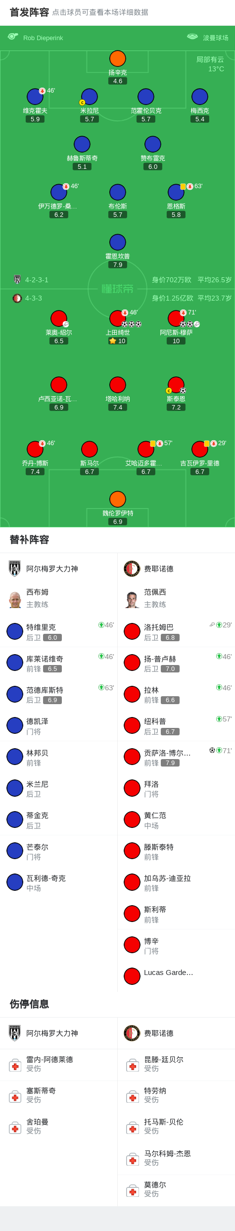 费耶诺德7-0横扫阿尔梅罗大力神,上田绮世帽子戏法,阿尼斯-穆萨梅开二度