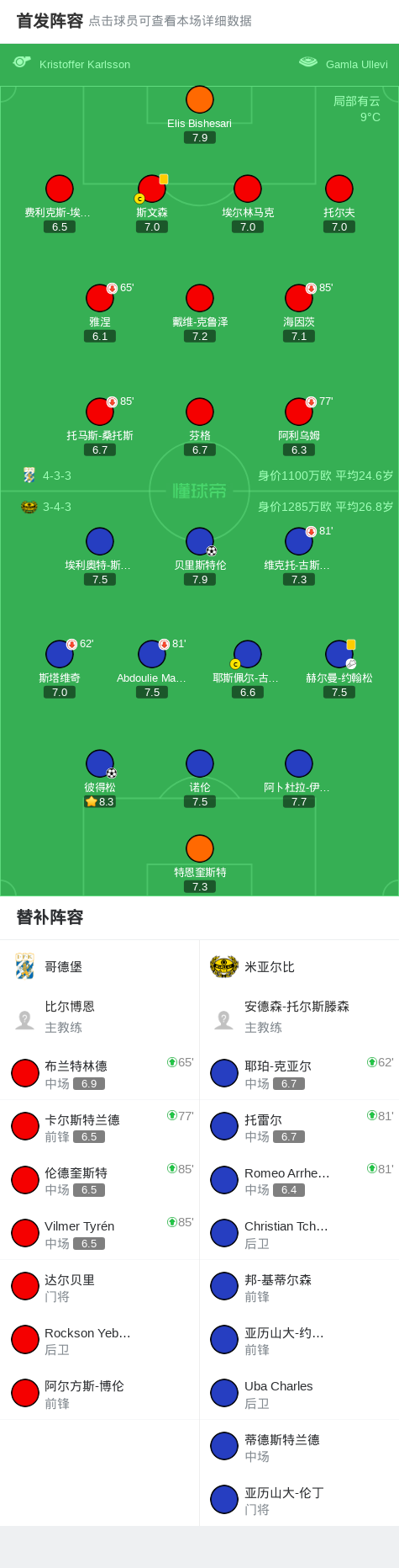 第21分钟,米亚尔比球员赫尔曼-约翰松助攻贝里斯特伦打入一球。