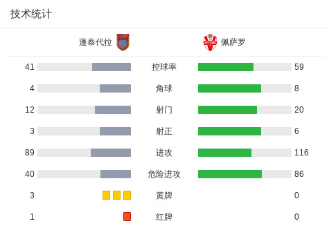 下半场补时第8分钟,蓬泰代拉球队Giuseppe Battimelli吃到第二张黄牌。