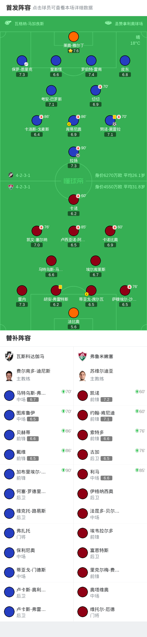 第38分钟,瓦斯科达伽马球员保罗-恩里克助攻拉扬打入一球。
