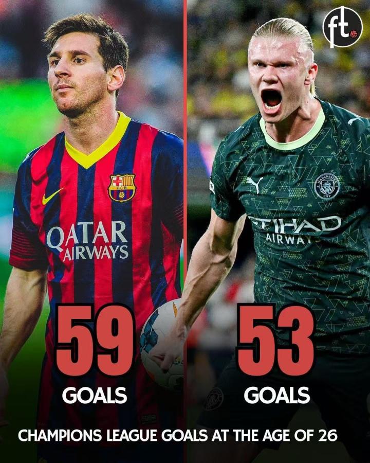 哈兰德26岁前在欧冠打进53球,仅次于打进59球的梅西李老八啊 @懂球帝2025-10-22 15:03据统计,哈兰德26岁前在欧冠打进53球,仅次于打进59球的梅西。 有趣的是,C罗在26岁前的欧冠进球只有梅西的一半,而他最终成为了欧冠历史射手王。展开更多