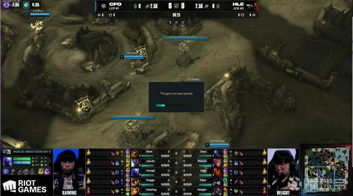 北京时间10月22日,英雄联盟S15瑞士轮进入2-1晋级日的争夺。LCK二号种子HLE与LCP一号种子CFO争夺一个晋级淘汰赛的席位。在第二局游戏中Peanut前期节奏糟糕0/3开局,CFO野辅巨魔、女坦发育不错,团战提供了充足的坦度。但炼金龙魂团战中,Viper女警找到完美输出位置砍下三杀,局势瞬间反转。随后伤害不足的问题反而来到CFO方面,随着HLE收下大龙成功推进,游戏结束,他们成功晋级S15八强,而CFO将进入2-2池等待决胜局对手。