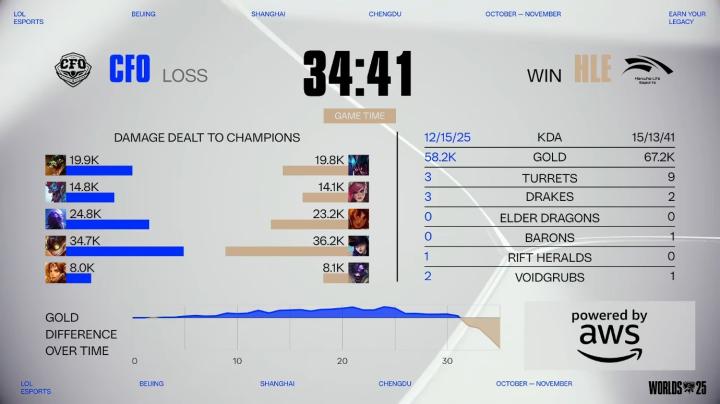第23分钟,CFO拿下厄塔汗,随后虽然HLE打出了全部控制,但伤害始终无法补全,在大好的局面下没有击杀任何人;