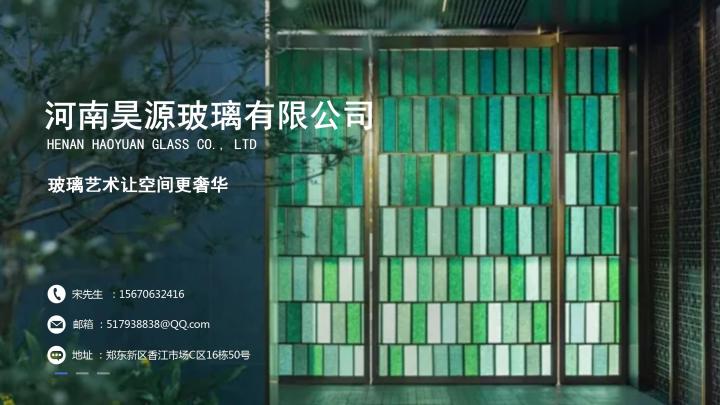 河南昊源玻璃有限公司2011年成立于郑州,凭借富有经验及专业知识的服务团队,尽心为客户提供专业服务。甄选千款玻璃及水晶样板,根据客户的需求及喜好的风格推荐和展示,所见及所得,让“订制”按照效果图1:1完美落地训练有素的施工团队和成熟的工程管理运用最先进的知识、技能、工具及科技满足不同客户的项目深化落地要求设备完善的生产厂房,专业工人团队,运用各种先进玻璃工艺技术及知识,致力将客户心目中的产品真实呈现眼前。配备经验丰富、技术精湛的工程队伍,为客户提供一站式服务,务求打造符合客户要求及品味的玻璃佳作,确保准时如期。