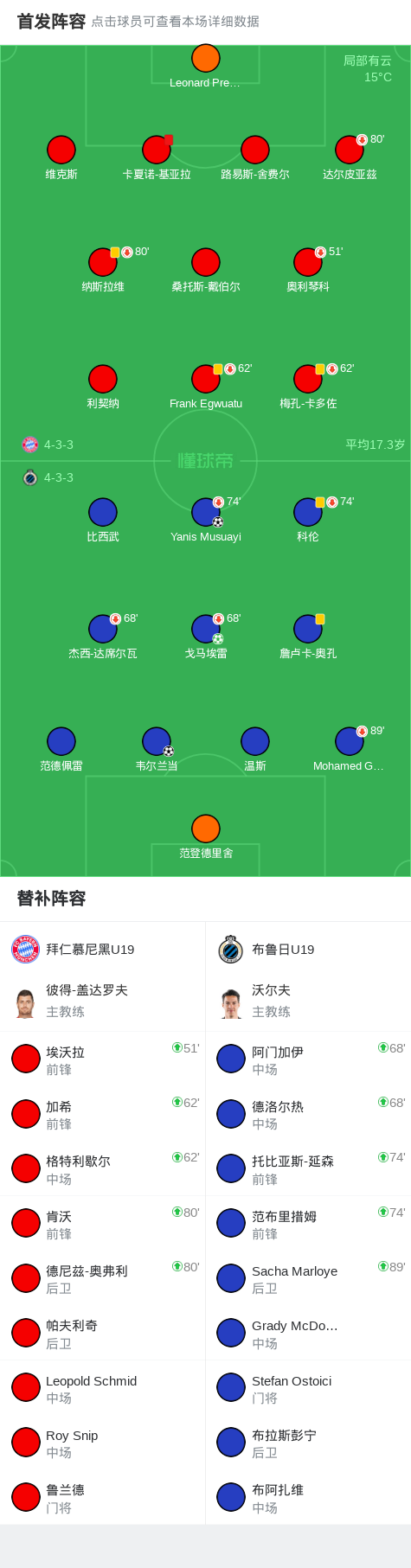 布鲁日U19 3-0大胜拜仁慕尼黑U19,韦尔兰当建功,Yanis Musuayi破门