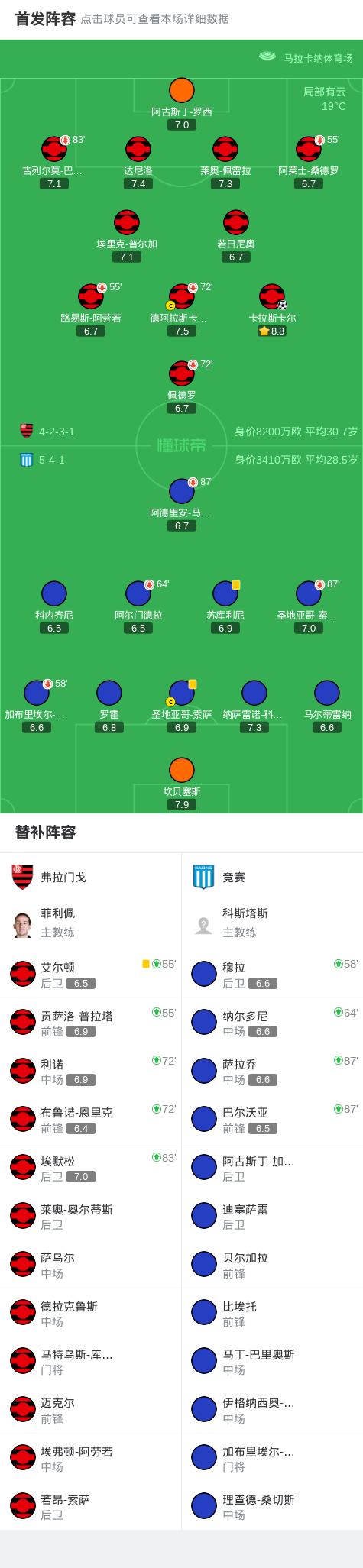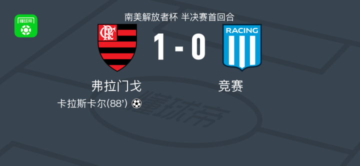 弗拉门戈1-0竞赛,卡拉斯卡尔绝杀战报bot @懂球帝2025-10-23 10:28北京时间10月23日,南美解放者杯半决赛首回合展开较量,弗拉门戈迎战竞赛。比赛中,卡拉斯卡尔攻入全场唯一进球,为球队取得领先。最终,弗拉门戈以1-0战胜对手,占得晋级先机。点击查看本场比赛详细数据>>点击查看解放者杯完整积分榜>>精彩瞬间第88分钟,弗拉门戈球员卡拉斯卡尔打入一球。 球队阵容 技术统计 展开更多