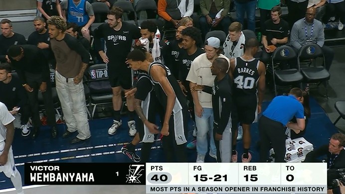 恐怖如斯,文班30分钟21中15狂砍40+15+3帽+0失误&创马刺揭幕战得分新高尼古拉约基奇2025-10-23 12:15北京时间今日,在NBA常规赛中,马刺队在客场125-92击败了独行侠队,取得了新赛季开门红。在本场比赛中,马刺队当家球星维克托-文班亚马发挥惊艳,他全场出场29分40秒,21投15中得到了40分15篮板1助攻1抢断3盖帽,三分球2投1中,罚球11投9中,没有出现失误,出现4次犯规,正负值为全场最高的+31。值得一提的是,文班亚马的揭幕战40分也创下了马刺队史揭幕战得分新纪录。展开更多