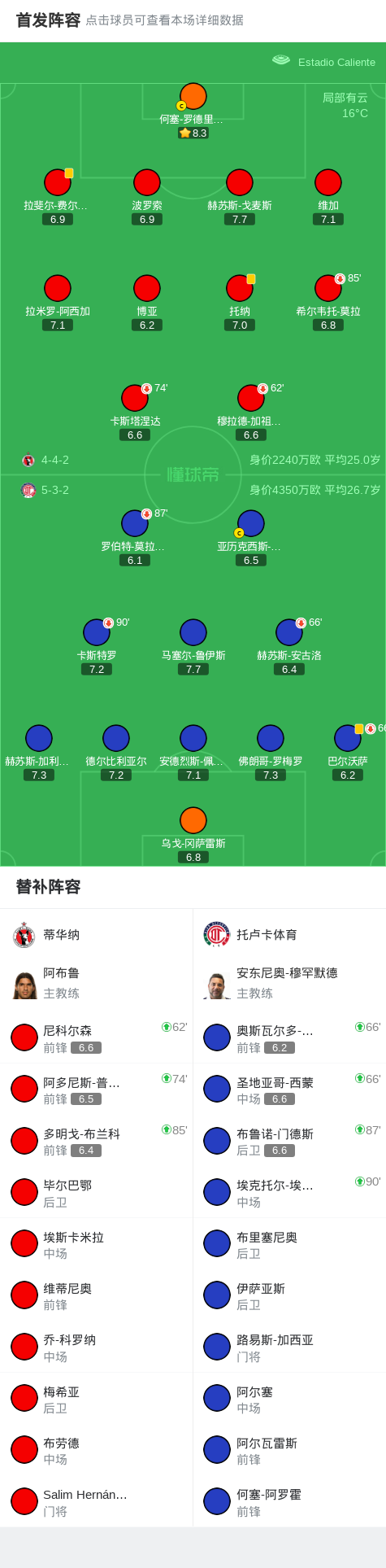 蒂华纳0-0托卢卡体育,双方互有攻守战报bot @懂球帝2025-10-23 12:59北京时间10月23日墨西哥足球超级联赛 春季联赛 第14轮,蒂华纳主场对阵托卢卡体育。最终比分蒂华纳 0-0 托卢卡体育。点击查看本场比赛详细数据>>点击查看墨超完整积分榜>> 球队阵容 技术统计 展开更多