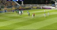 第36分钟,张稀哲传中,柏杨回头望月扳回一城,国安1-2落后大埔