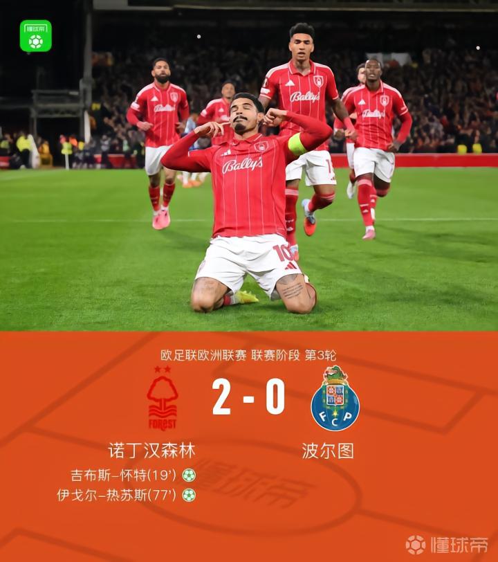 森林2-0波尔图结束10场不胜,怀特、伊戈尔-热苏斯双双点射