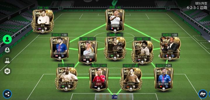 金球奖球员涵盖了游戏内各个位置,大家可以结合自己的喜好组建阵型,这里我们以一套防守反击见长的4231边路阵型进行讲解。