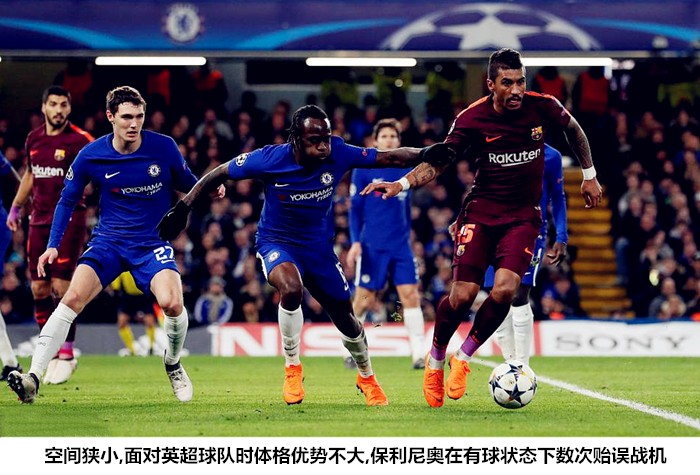组织者布斯克茨和梅西在中场予取予求,终结者苏亚雷斯和保利尼奥却在密集防守面前显得比较挣扎。前者依靠对位优势多次在外围完成摆脱后的钻营,后者则因为运气不佳而两次错过了梅西的妙传。蓝军的密集防守削弱了保利尼奥的核心价值(后插上做墙/破局),巴萨的右路难以在进攻端起到压制作用,对手自然会抓住这一漏洞形成反制。值得一提的是,保利尼奥在上半场就曾多次出现反击中得球后犹豫不决进而耽误快攻的表现,强强对话放大了他在传球水平和意识方面与队友的差距;此外,巴西人作为防守者可以完成盯人任务但整体意识不算突出,切尔西在劣势局面下组织起的零星攻势大多在其身后的空当内策动。