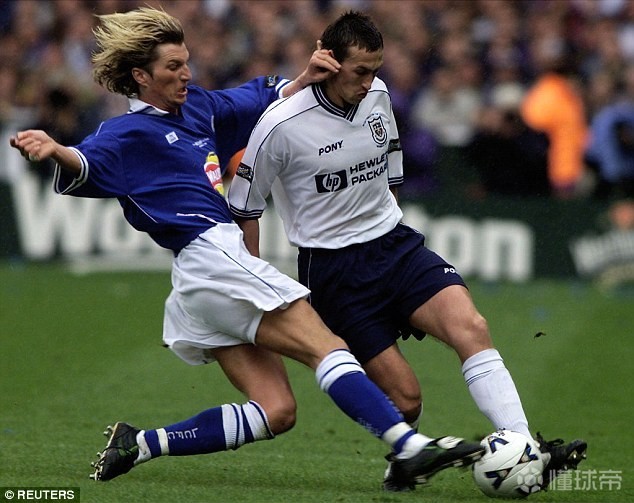 布莱克本时期的萨维奇。他在布莱克本效力了三个半赛季,出场100次,攻入3球。
