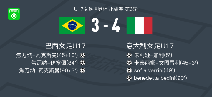 意大利女足U17 4-3巴西女足U17,benedetta bedini建功,sofia verrini破门
