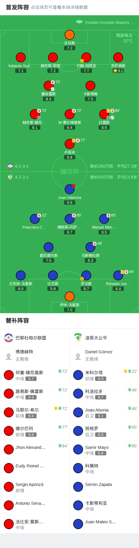 巴耶杜帕尔联盟2-0波哥大公平,赫苏斯-穆尼奥斯破门,托雷斯锦上添花