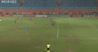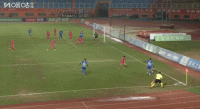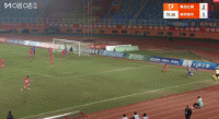 第8分钟,任意球被顶出,董洪麟抽射偏出球门