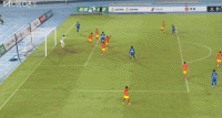 第3分钟,阿巴拉辛角球开出,郑钧蔚头球破门,佛山南狮1-0