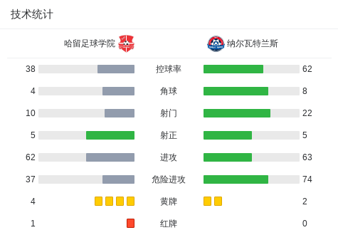 下半场补时第2分钟,哈留足球学院球队Kristjan Kriis吃到红牌。