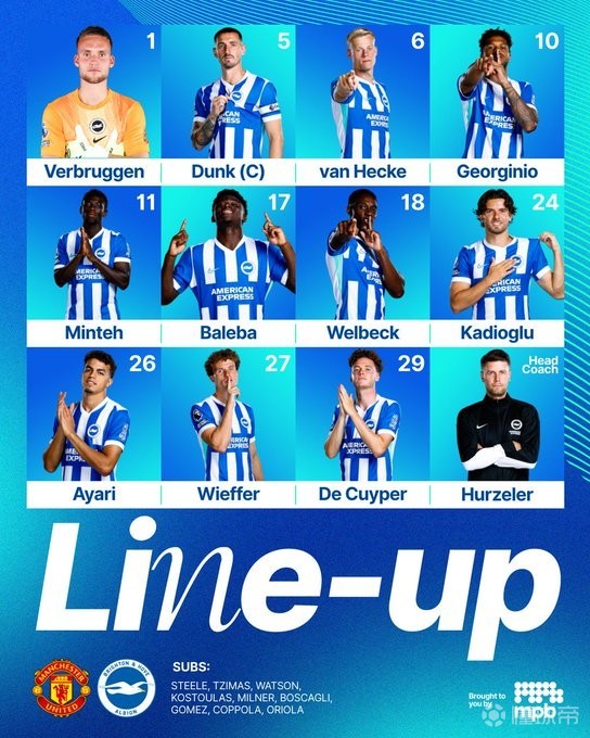 北京时间10月26日00:30,英超第9轮的一场对决。曼联坐镇主场,迎战布莱顿。赛前,双方的阵容公布如下: