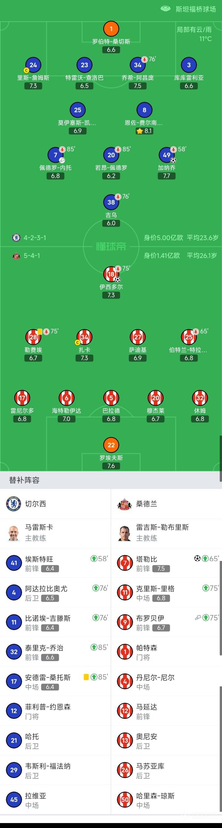 第22分钟,切尔西门前混乱,伊西多尔破门,切尔西1-1被桑德兰扳平!