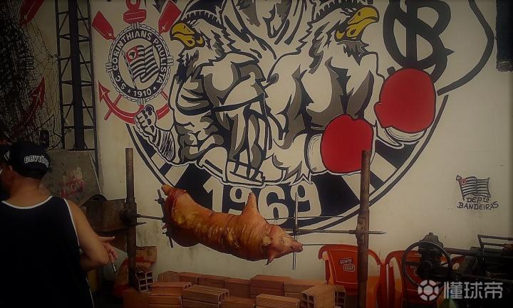老实说,我们都几乎放弃能够与他们面谈的希望,但在最后一刻,却被忠诚之鹰邀请参加一个仪式:一个会员们的“赛前热身”——烤肉。准确地说,是烤猪。自80年代起帕尔梅拉斯球迷开始以猪作为本队的吉祥物,据说这是为了回击科林蒂安球迷称呼帕尔梅拉斯球迷为“猪”。毫无疑问,这个仪式是忠诚之鹰对于对手最大的挑衅,并且旨在提振球迷会士气,号召大家打起精神准备迎接赛季最大、最重要的一场“战役”。