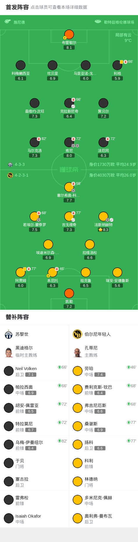 伯尔尼年轻人3-2苏黎世,法斯纳赫特1传1射,塞尔希奥-科尔多瓦建功