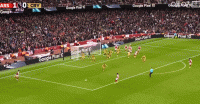 第50分钟,加布里埃尔头球攻门击中横梁,随后萨卡远射偏出