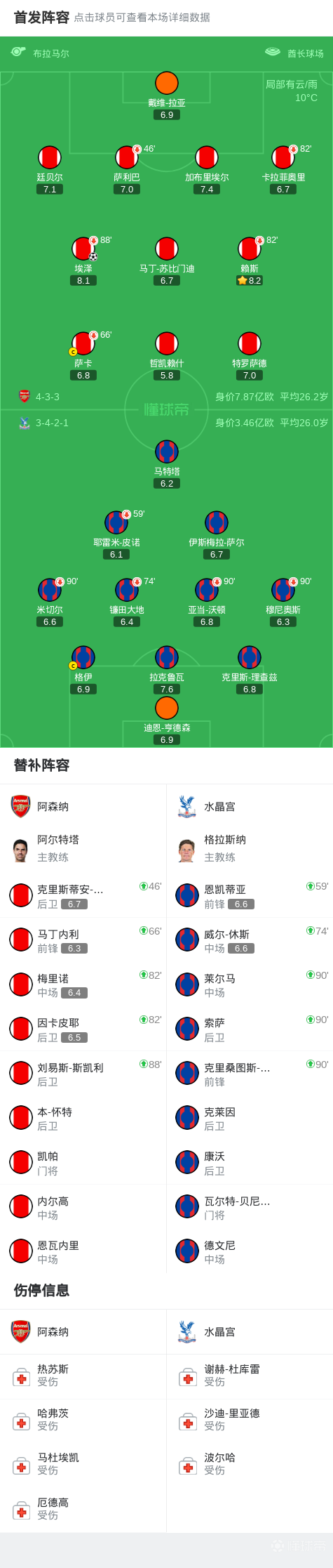 剑南春|阿森纳1-0水晶宫,埃泽制胜弑旧主,加布里埃尔中横梁