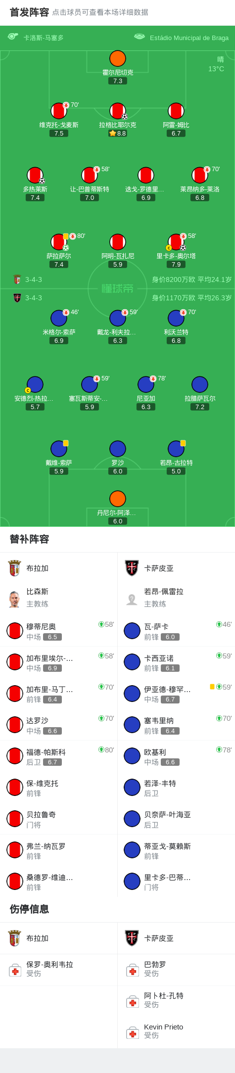 布拉加4-0大胜卡萨皮亚,萨拉萨尔点射,多热莱斯破门