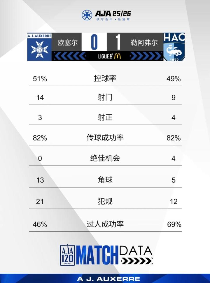 法国时间10月26日傍晚,欧塞尔迎来了与勒阿弗尔的法甲第9轮对决。对手凭借下半场伊始的进球锁定胜局,我们全力反扑却未能改写比分,最终0-1失利。