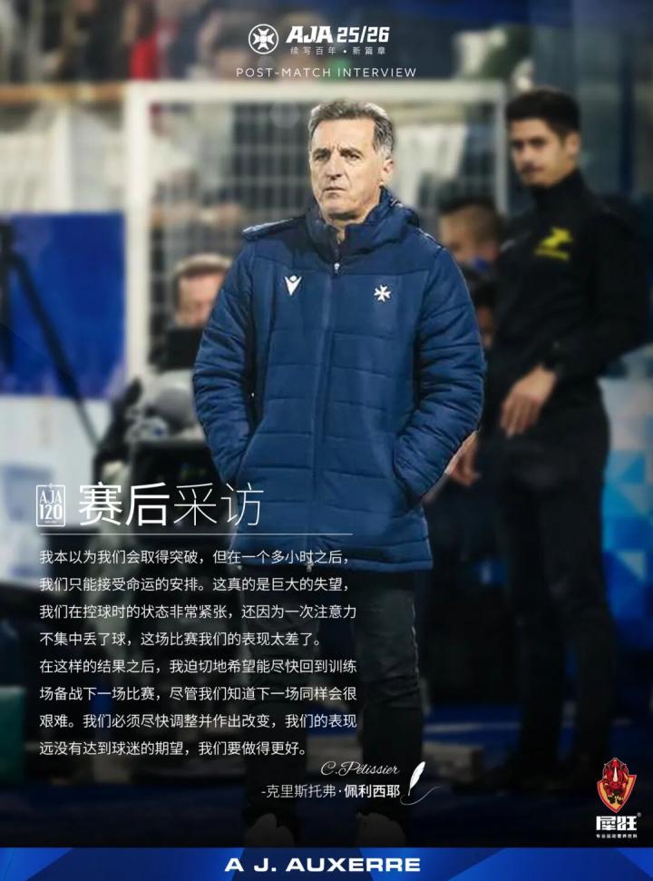 主教练佩利西耶对于比赛结果感到失望:“我本以为我们会取得突破,但在一个多小时之后,我们只能接受命运的安排。这真的是巨大的失望,我们在控球时的状态非常紧张,还因为一次注意力不集中丢了球,这场比赛我们的表现太差了。